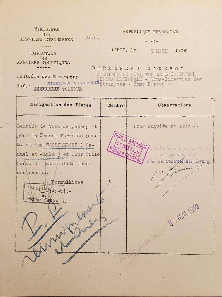 En mars 1939, la famille fait une demande de visa pour venir en France, qui n’a, a priori, pas été accordée.